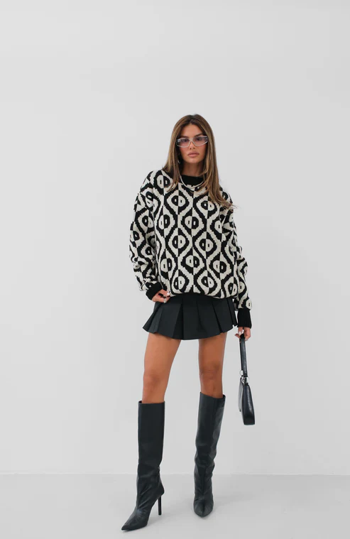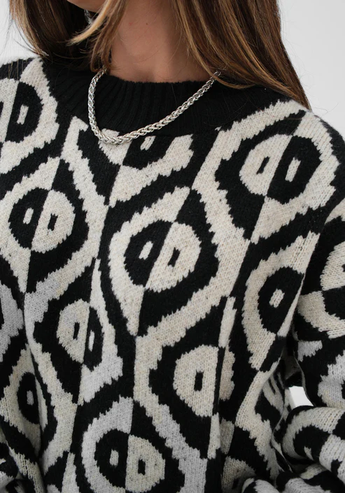 Πουλόβερ oversize με κεντημένο γεωμετρικά σχέδια